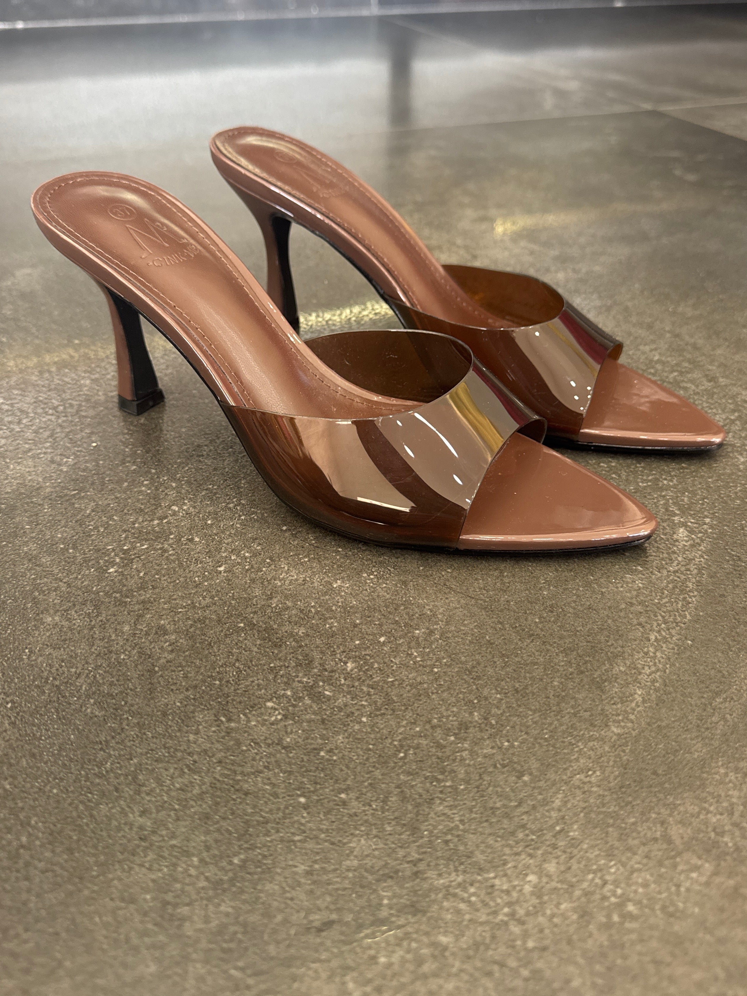 Sandalo mule trasparenza cacao